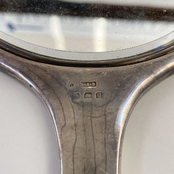 Early 20th century silver and tortoiseshell pique-backed dressing mirror, Birmingham 1919, maker's mark worn, 26cm