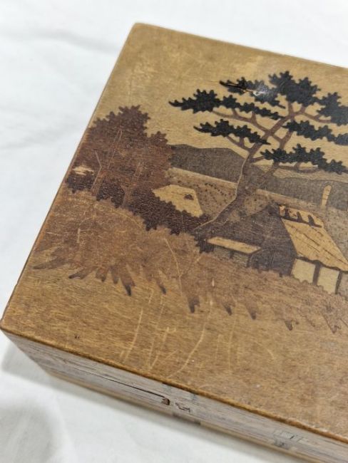 Censer with surface scratches, accretions, tarnishing. Polish residue especially to interior and character mark. Some imperfections throughout. Fish with numerous small chips. Lacquered box with scratches, scuffs and losses to the lacquer. Both secret boxes with scratches, scuffs and wear. Carved incense cylinder with area of loss to one end. Garuda figure with chip to jaw. All items General wear and tear commensurate with age and use, see photos.