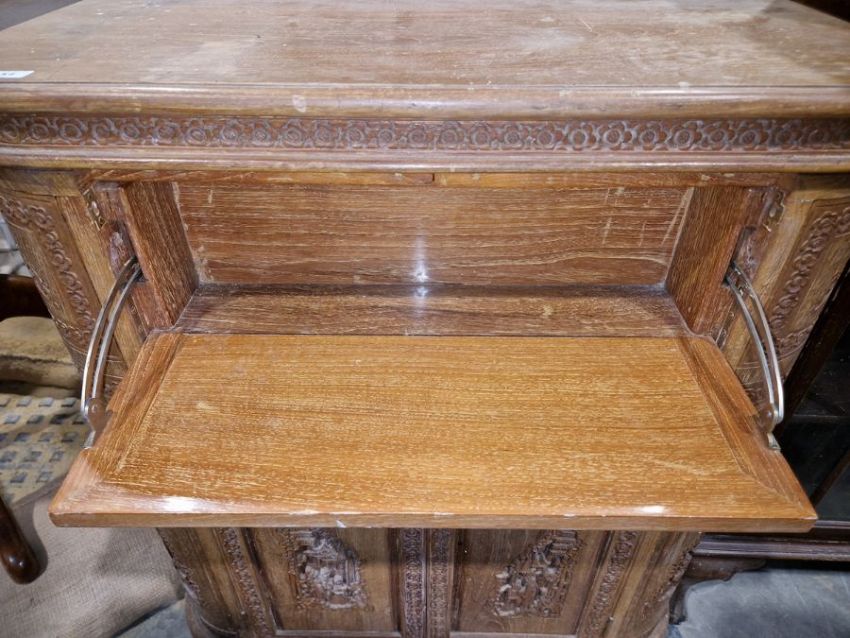 Surface scratches, scuffs and knocks to the wood. Split to section of moulding on left side. Some fading, discolouration and ring marks. General wear and tear commensurate with age and use, see photos.