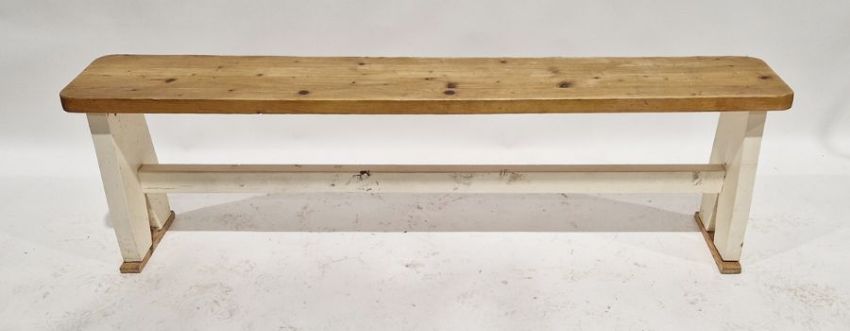 Rectangular pine kitchen table, 78cm high x 198cm x 84cm deep, and a pine kitchen bench (2)