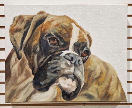 Thuline De Cock, (Belgian b.1970) Oil paintingPortrait of a boxer dog, signed lower left, 40.5cm x 51cm