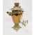 Antique Russian brass and copper samovar, having scalloped everted edge, pair scroll handles, panelled tapering body, on circular base and scroll feet, with Russian inscription, 56cm high
