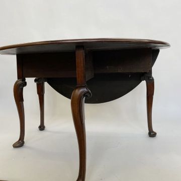 Antique mahogany drop-leaf dining table all on scroll carved cabriole supports, pointed pad feet, 137cm long x 122cm wide x 73cm high
