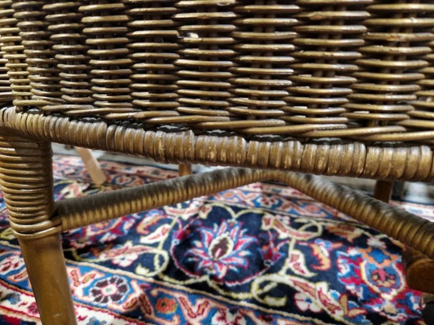 All with some scuffs to the paint. gold chair with breaks and areas of loss to the wicker.  All with general wear and tear, see photos.