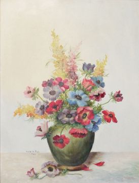 Lucien Le Bois (20th century)Oil on boardStill life of flowers in a vase, signed, 62.5cm x 47cm20th century schoolOil on boardStill life study of flowers, initialled lower left, 50cm x 60cm (2)