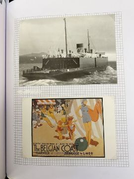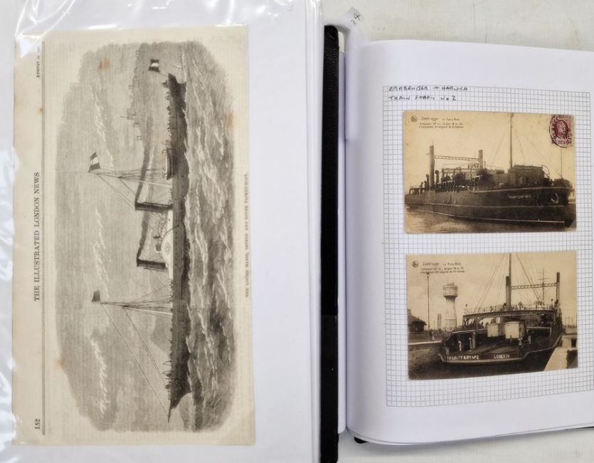 Belgium: large black ring binder of postcards/ship history of Ostend-Dover ferry and green album of Zeebrugge – Harwich/ Hull crossing, 200+ postcards (some copy) - illustrations, real photographs and related ephemera of ports and ships used. Commemorative covers and postmarks seen, including Paquebot. Scarce 1902 Belgian State Railways Dover-Ostend guide included.From the collection of Tom Pring, a highly respected member of the Belgian Study Circle and the author of two works on Belgian issues, ‘Fine Barbe Varieties’ (2009) and ‘1893 Armoires du Royaume’ (2015). Pring was half-way through a work on the Ostend-Dover Route, which he was sadly unable to complete.Condition ReportAdditional photographs included.