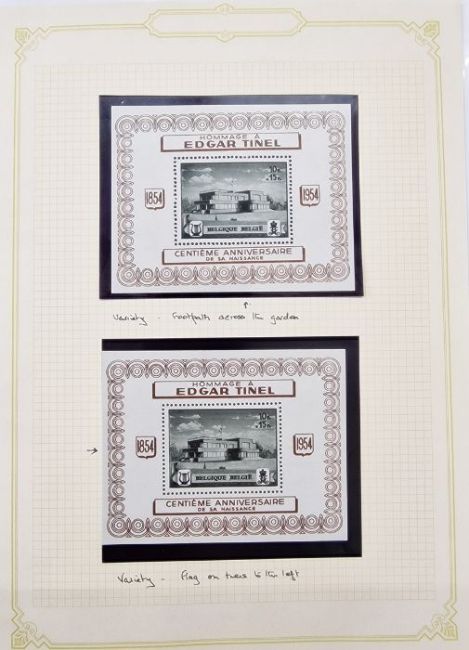 Belgium: Large ‘SAFE’ sleeved ring binder and other black folder full of Belgium-related postal items from the 1930s to 2000s – stamps (definitive, commemorative and air sets) souvenir sheetlets (e.g. ‘Belgica 72’), mini-sheets, covers/fdc and cinderellas (80+) from across the period covering exhibitions, fairs, royal visits and many other events. Sets, blocks, varieties plus cinderellas on postally-used cards seenFrom the collection of Tom Pring, a highly respected member of the Belgian Study Circle and the author of two works on Belgian issues, ‘Fine Barbe Varieties’ (2009) and ‘1893 Armoires du Royaume’ (2015). Pring was half-way through a work on the Ostend-Dover Route, which he was sadly unable to complete.
