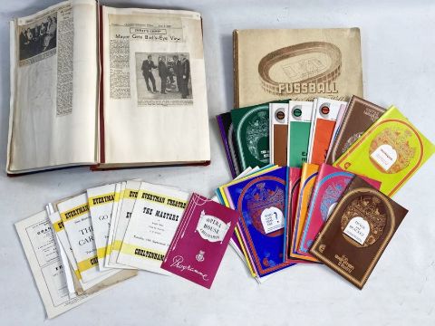 Various theatre programmes from the Everyman Theatre, Cheltenham spanning early-late twentieth century, 'Fussball das Spiel der Welt' dated 1952, and a large cutting book, c.1960s containing various local newspaper cuttings from Gloucestershire