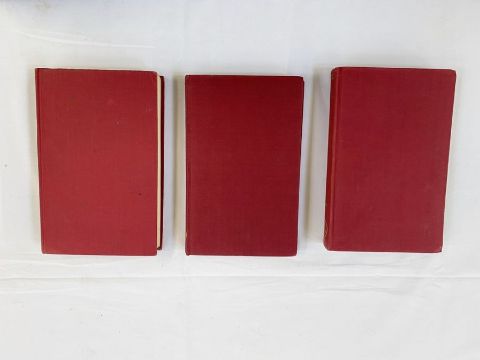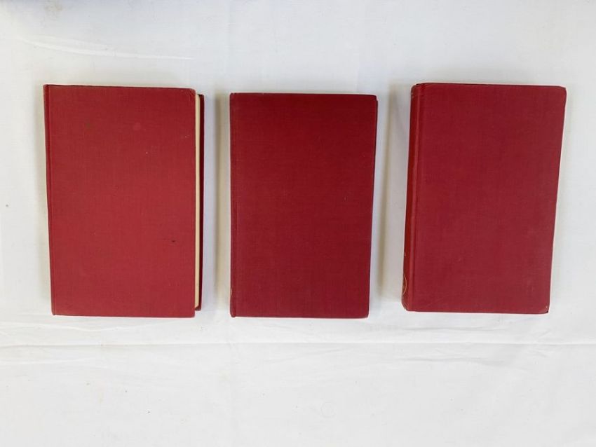 Tolkien, J. R. R."The Fellowship of the Ring", George Allen & Unwin, 5th impression December 1956, red cloth, dust wrapper supported by stamp paper, backstrip chipped and with some loss, red ink spot and other spots on front of the dust wrapper  "The Two Towers", George Allen & Unwin, 4th impression 1956, red cloth, corners slightly bumped, offsetting on ffep from dj which has been soiled and the backstrip"Return of the King", George Allen & Unwin, 2nd impression 1955, pencil name in ffep, slight offsetting on ffep from dust wrapper, backstrip a little faded and chipped at the top, corners slightly bumped (3) all maps presentCondition ReportPhotographs to include the boards and spines.