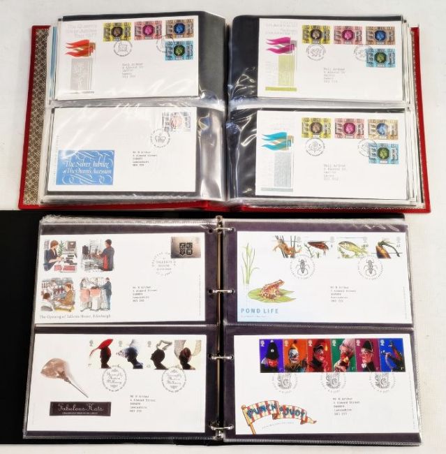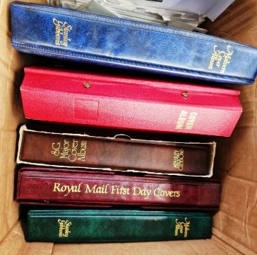 FDCs some in unopened envelopes, albums of FDCs (1 box)