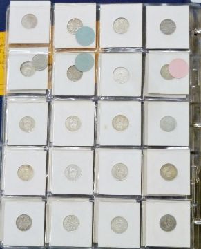 Folder of UK coins including 60 sixpences from Victoria to Elizabeth II, various grades, some uncirculated, very nice group, some coins still held within envelopes from Spink of London, some high grade pennies and some scrap silver (.500)