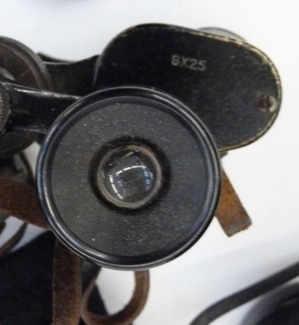 Pair of Carl Weitzler Regent binoculars 10cm x50cm, table gong, 'Pik-a-Styk' and two other pairs of binoculars (1 box)