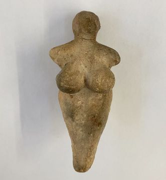 Stone Age Venus idol with small cavity in the legs, 12cm x 6cm wide approx.