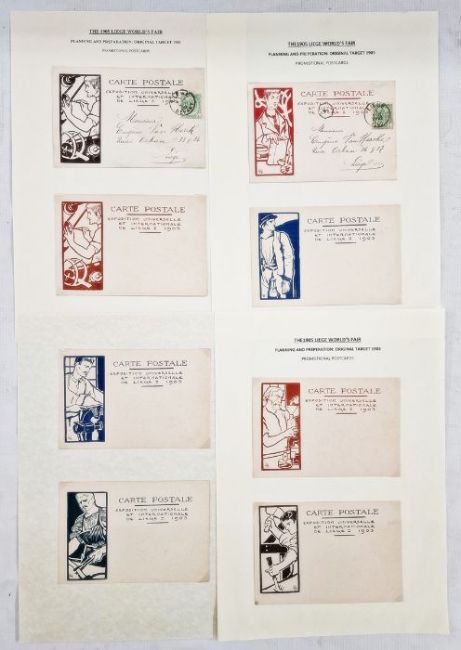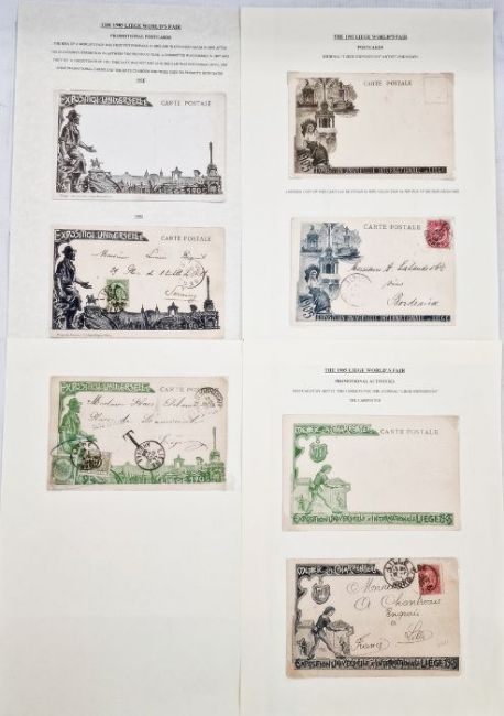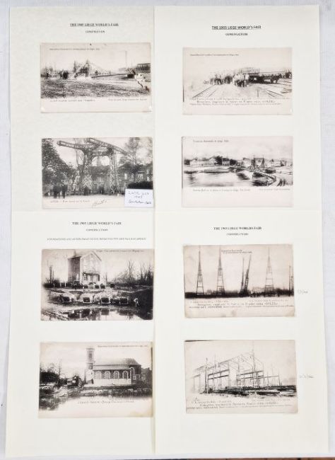 Belgium: Liege World Fair exposition 1905 construction and promotion collection in two large volumes. Includes over 350 used and unused postcards and covers covering related activity with scarcer varieties, includes aluminium, wooden, silhouettes and trade cards, much promotional material plus definitives, commemoratives and cinderellas. Share and lottery funding certificates, tickets and abonnements (season tickets), brochure/guide, maps and plans. Much expo and postal history in well-presented lot.From the collection of Tom Pring, a highly respected member of the Belgian Study Circle and the author of two works on Belgian issues, ‘Fine Barbe Varieties’ (2009) and ‘1893 Armoires du Royaume’ (2015). Pring was half-way through a work on the Ostend-Dover Route, which he was sadly unable to complete.