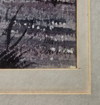 Alan Davies Watercolour"Evening Reflections, Pwll Deri", signed lower right, framed and glazed, 35cm x 49.5cm PastelStudy of an interior with bowl of fruit on a table, indistinctly signed lower right, framed and glazed, 28.5cm x 39cm (2)