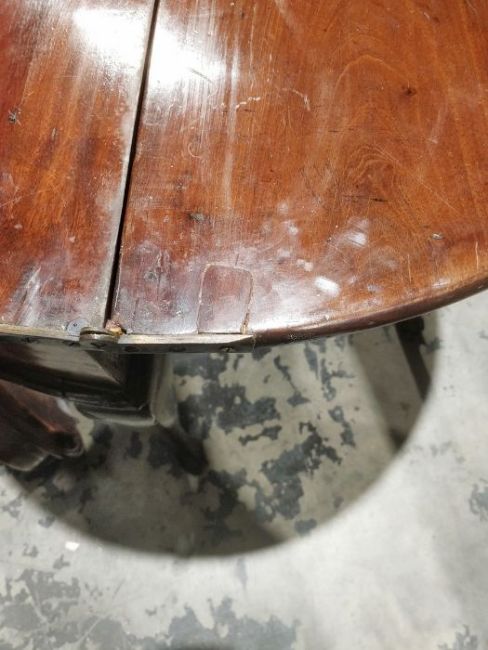 The top is damaged and repaired but not successfully, one hinge is loose, there are other repairs . See added photos