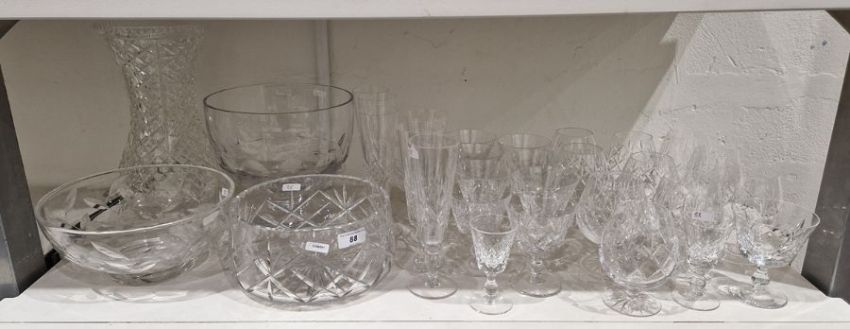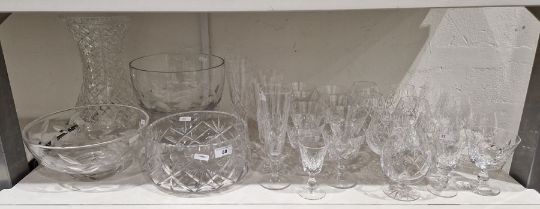 Quantity of Stuart glassware, cut glass vase, glass bowls etc