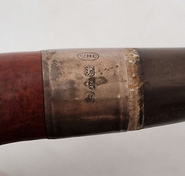 Three various pipes, one with a silver collar and silver rim, both marked and initialled 'WHC' (3) Condition ReportReport Request: Is the lower curved pipe marked? (only)The lower curved pipe is marked "Weingot, London"