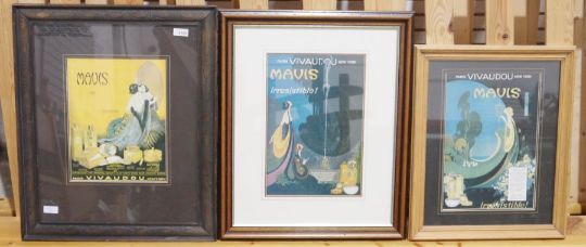 1920's advertising poster for Vivaudou after Henry Clive and further assorted Vivaudou advertising posters, all framed and glazed (6)