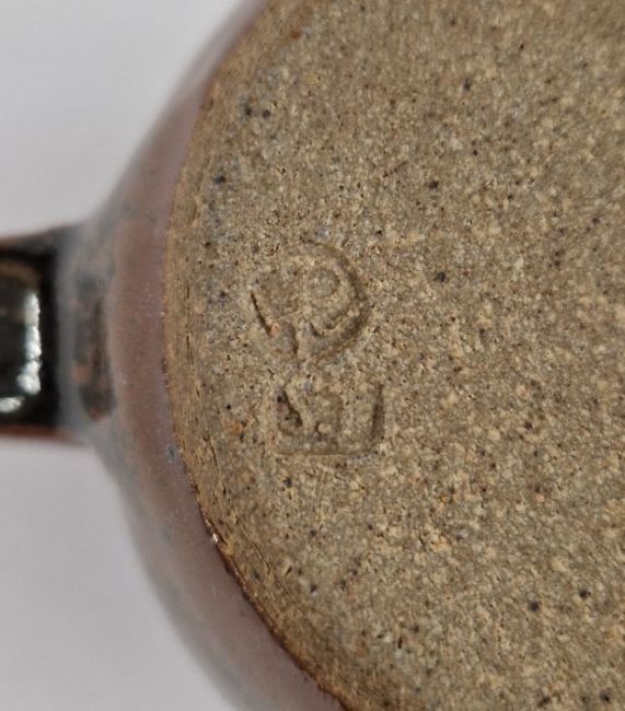 Sidney Tustin (1913-2005) for Winchcombe Pottery, pair of cups with tenmoku glaze, impressed marks to base on both, height 7.5cm, a Winchcombe Pottery beaker with tenmoku glaze on grey speckled ground with wavy line decoration, impressed mark to base, height 10.5cm, a studio pottery footed beaker with iron glaze decoration and a Winchcombe-style coffee can and saucer (6)