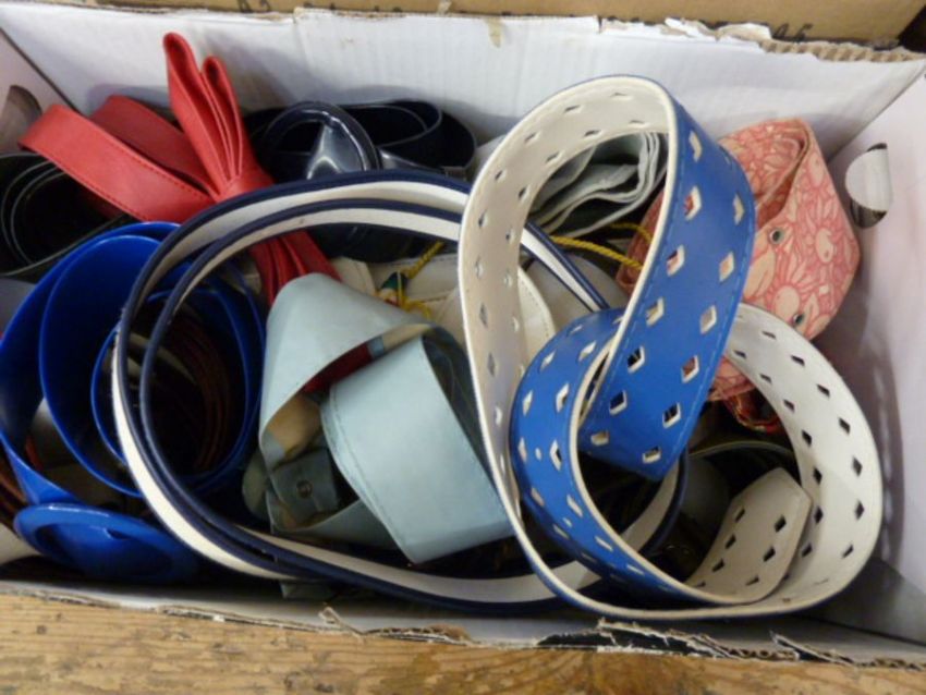 A mid twentieth century 'Gladstone bag' handbag, brown leather with silver coloured metal hardware and fastening, double leather handles, labelled 'Maid Marion - made by English Lady' ,  a Edina Ronay fake fur and leather handbag,  a 1920's velvet  mini Gladstone bag ( worn) lizard skin clutch bag, linen clutch bag, raffia bag with bamboo handle, Moroccan punched leather hand bag, a Cambridge Satchel company style red leather satchel, and a cream tufted wool bag , A 'Billy Bag'  a box of various vintage and belts, a box of assorted silk, wool and other scarves, a box of leather glovesa boxed pair of Bally court shoes, a boxed pair of Roland Cartier gold and blue satin sling-back sandals size 6 with a high stiletto heel and a pair of Benjamin Adams vintage diamante peep-toe stilettos size 37 (6 boxes)
