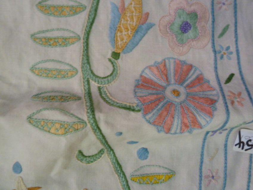 Vintage linen tablecloth, embroidered, 244cm x 252cm (extremely large bedspread/tablecloth)