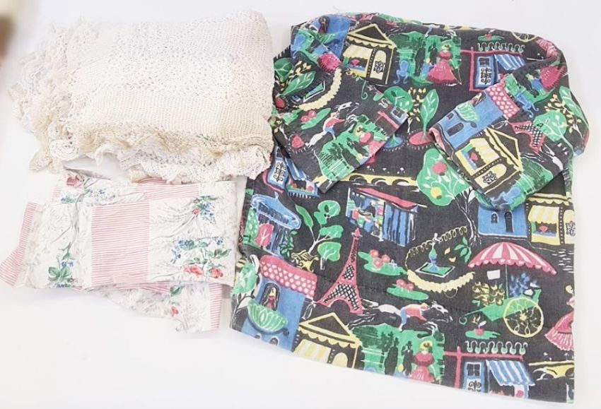 Assorted textiles to include African design fabric, late 20th century patterned fabric, towelling, quilt etc. (1 box)