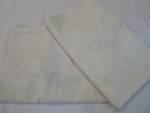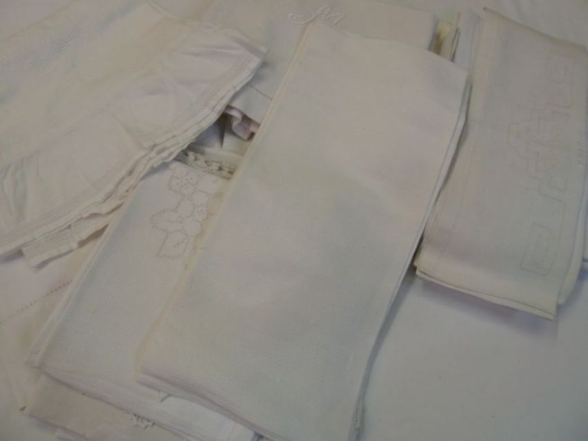 A mixed quantity of vintage bed linen, embroidered and some monogrammed, hand towels, pillow cases etc. (2 boxes)