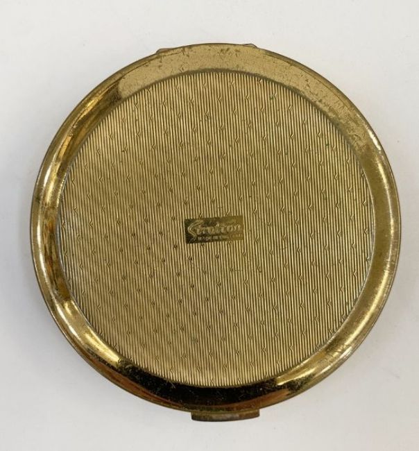 Various vintage Stratton compacts, one painted enamel with peacock and flowers, green with gold retro design, engine turned, etc., some unused and a white metal cigarette case (1 box)