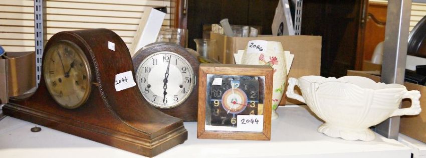 Assorted clocks, a resin bust of a gypsy girl, various Dulac-style jugs, Carltonware-style vases, etc (1 box plus)