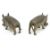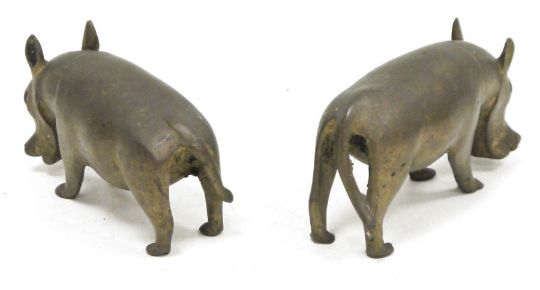 Pair probably African patinated metal models of wart-hogs, 15.5 cm long