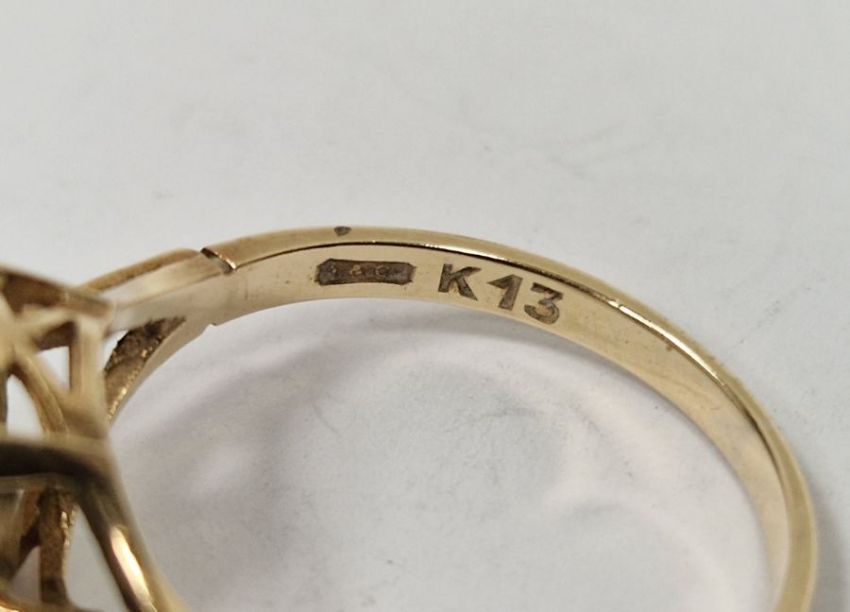 18ct gold and white opal cabochon ring, 2g approx. and a pair of gold and opal flower-shaped stud earrings, 1g approx. (2)