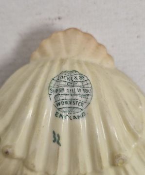 Royal Crown Derby Imari pattern bird paperweight, printed iron red marks, a Worcester (Locke & Co) shell-shaped dish painted by C Morris with a pheasant in landscape, 10cm wide, a Continental porcelain box-shaped pot and cover printed flower sprays and five Continental pottery and porcelain models of blackbird pie funnels