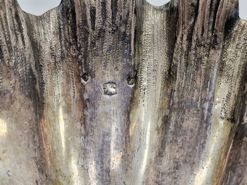 Set of four 19th century Elkington & Co silver plate open shell salt cellars, in the form of clam shells raised upon three ornate conch shell feet, date marks c.1850's, measuring approximately 12cm wide 5cm high