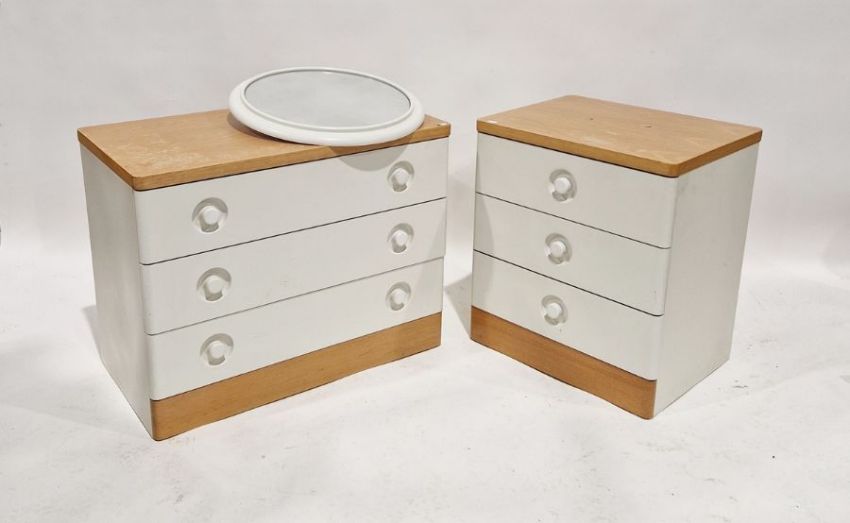 Two vintage Stag Nocturne pattern chests of drawers, each having three drawers, the largest measuring 63cm high x 81cm wide x 44cm deep