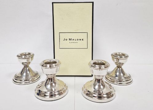 Pair of silver-filled squat candlesticks, Birmingham 1990, 6.5cm high and a pair of 1970's silver-mounted squat candlesticks, Birmingham 1973, 6cm high (4)
