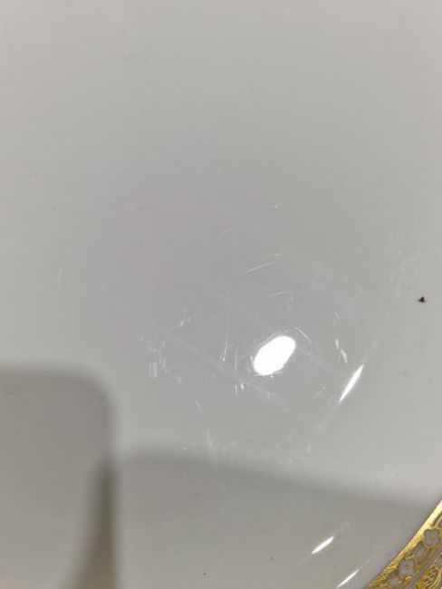 Generally good condition. Very little wear to the gilt. Light surface scratches/utensil marks to all, accretions. One side plate with repair. All firsts except one possibly a second marked G3 in green. All with general wear and tear commensurate with age and use, see photos