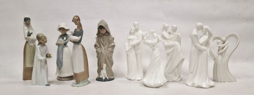 Four Nao porcelain figures, each depicting a boy or girl with animal, five porcelain groups undecorated to include Wedgwood, Worcester, etc and one other figure of girl in nightdress (10)
