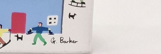 'Winter Skaters' signed lower right, titled on verso, 50cm x 50cm