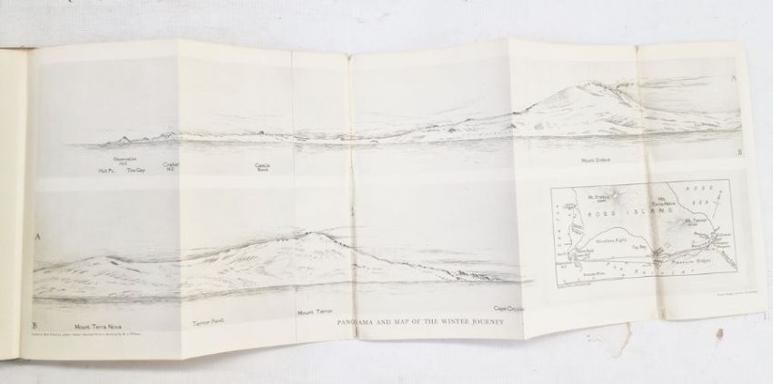 Cherry-Garrard, Apsley  "The Worst Journey in the World Antarctic 1910-1913" two vols, Constable and Company (1922). panoramas, maps, and illustrations by 'The Late Doctor Edward A. Wilson and other Members of the Expedition', original paper over board, linen back strips with paper pastedown titles to each vol, both vols hinges broken, splitting to the backstrips, vol I has pencil inscription 'JCV Bt Chilworth Church Fete 19' and an inked name scribbled out, vol II has part loss to pastedown title with folding plate IV loose and plate V torn in two with part loose, both vols with wear and soiled boards, all plates and maps present as required (2)'Cherry-Garrard's book has often been referred to as the finest polar book ever written ... a monument immortalizing the [Terra Nova] expedition in the annals of Antarctic exploration and geographic exploration in general' (Rosove).Condition ReportAdditional photographs included.