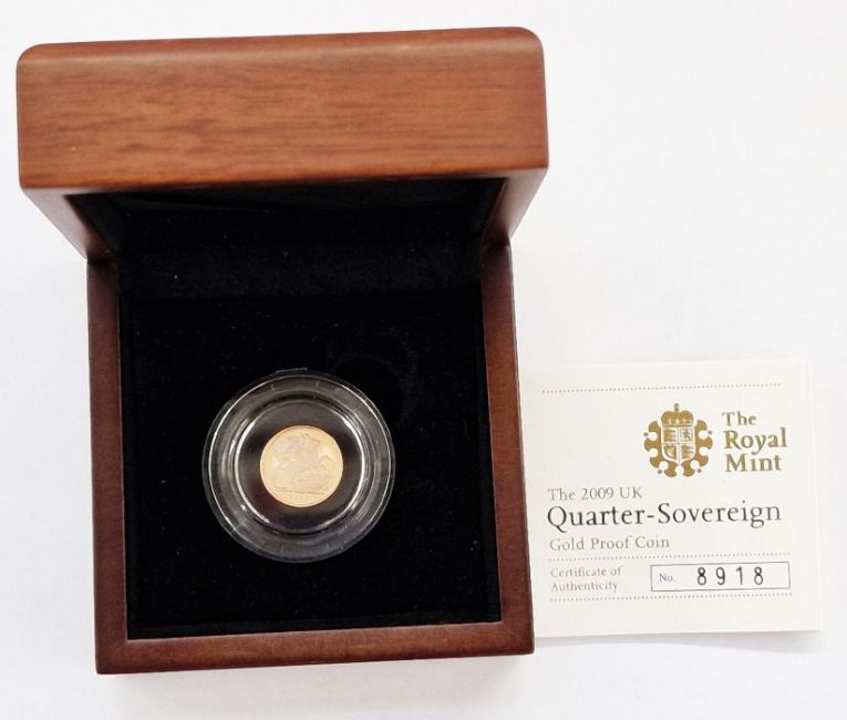 Elizabeth II (1952-2022) Gold Proof Quarter Sovereign, 2009, St George and dragon, date below, in original Royal Mint Box and Certificate number 8918