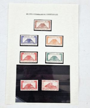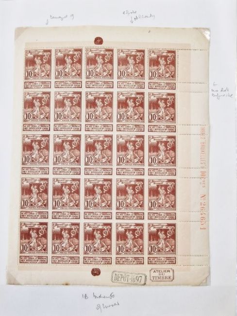 Belgium: large 150+ page ‘SAFE’ ring binder, with written-up, well-presented, wide ranging collection of Brussels and Belgian-related items from mid 19th century to mid 20th century. Definitive and commemorative stamps, cinderellas, vignettes and labels, some postally used and some imperforate with paper varieties. Various postcards, business letters, trade cards, invoices on promotional paper, official invitations/correspondence and wide range of exposition/exhibition/fair coverage including agriculture, air, auto, cycle, philatelic, art and engraving. Whole sheets of stamps, cinderellas, commemoratives including 5 & 10c Brussels Exhibition 1897 (SG 96 & 98) with varieties noted, mint 1910 charity set (SG 109-116) and cover of scarce mint 1935 International Philatelic Exhibition mini-sheet, (SG MS 657) cat. £600. Various exhibition covers/postcards and promotional postmarks, postage dues and proofs seen.From the collection of Tom Pring, a highly respected member of the Belgian Study Circle and the author of two works on Belgian issues, ‘Fine Barbe Varieties’ (2009) and ‘1893 Armoires du Royaume’ (2015). Pring was half-way through a work on the Ostend-Dover Route, which he was sadly unable to complete.