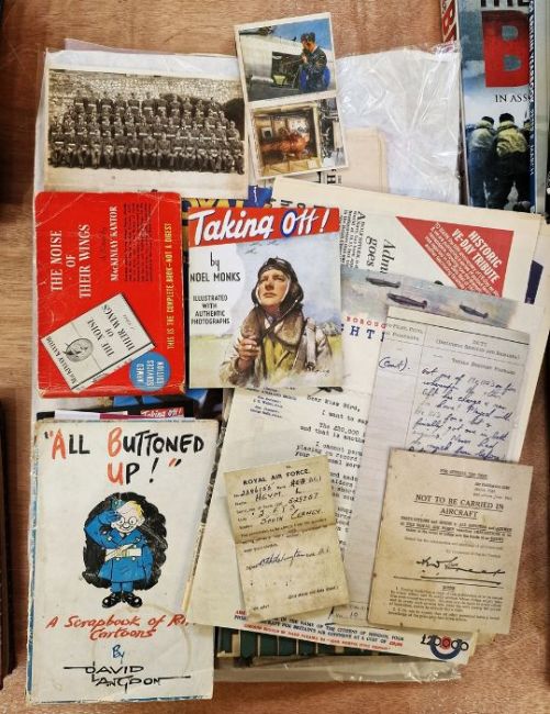 Aeronautical - Spitfire Interest "Against All Odds - The Battle of Britain 50th Anniversary Appeal" bearing signatures on the limp front cover, Haining ( ed.) "The Spitfire Log",  Mitchell R.J. " Schooldays to Spitfire",  Price Alfred "Spitfire, A Complete Fighting History", Price Alfred "Spitfire At War" and other related volumes, assorted ephemera to include a facsimile page from a Spitfire log-book, dated 1940, various photographs, newspapers etc (1 lot)