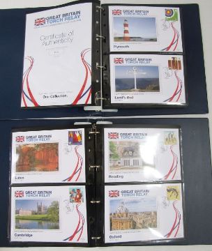GB: Decimal face value £300, London 2012 gold medal winners collection complete, mint and used, both Olympic and Paralympic, with “Host cities” sheet and “Official 2012 compendium”. In addition, limited edition, 1523 of 9950 GB torch relay commemorative cover collection complete in 2 binders.