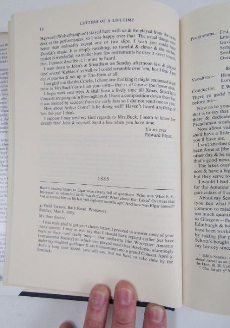 Edward Elgar interest - collection of books to include:-Maine, Basil"Elgar His Life and Works", G Bell & Sons 1933, photographic portrait, frontis "Elgar His Life and Works - The Works", G Bell & Sons 1933, photographic portrait, both blue cloth, some staining Northrop Moore, Jerrold "Edward Elgar, Letter of a Lifetime", Clarendon Press 1990, name inscription on ffep, blue boards, dj Powell, Mrs Richard"Edward Elgar Memories of a Variation"Del Mar, Norman"Conducting Elgar"Young, Percy M (ed) "Letters to Nimrod from Edward Elgar"Redwood, Christopher (ed) "An Elgar Companion"Atkins, E Wulstan "The Elgar - Atkins Friendship", inscription on ffep and three other volumes (13)