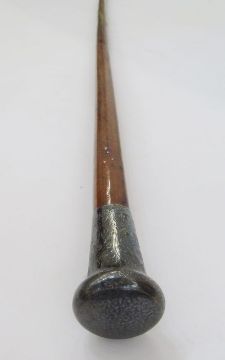 Collectable items; a Colibri lighter in black leather case, a 1950s football medallion, cigar cutter, silver penknife with mother of pearl handle, coins, silver spoon, silver-mounted walking cane and other items.