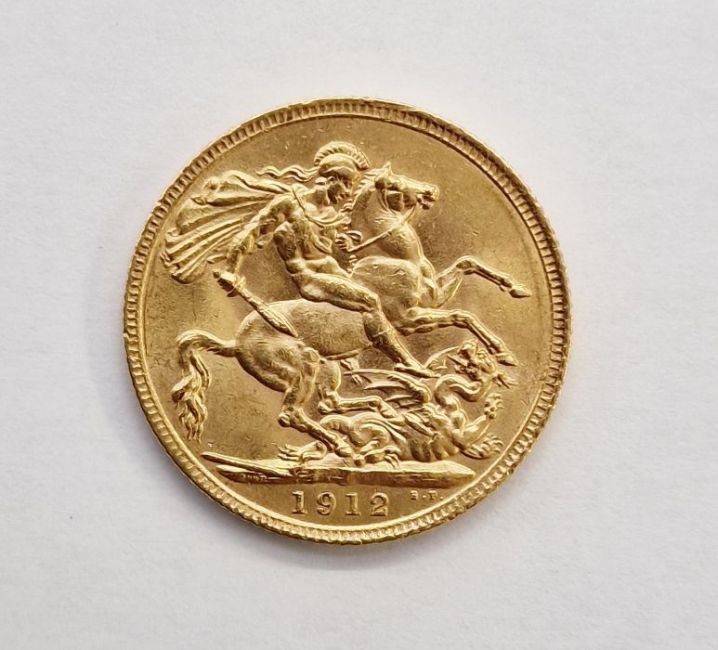 George V (1910-1936), Sovereign 1912, bare head left, St George and the Dragon date below