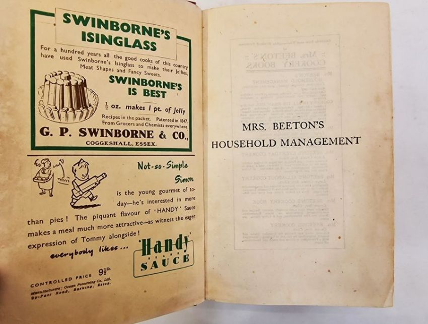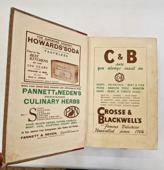 "Mrs Beeton's Household Management - a Complete Cookery Book ...", Ward, Locke & Co Ltd, colour frontis, colour and black and white plates, photographic illustrations, quarter red cloth with brown boards and red speckled edges
