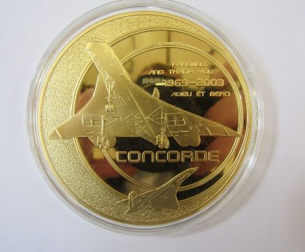 Box of mostly English coinage 19/20th C, some silver together with (3) large Concorde's final flight commemorative medals, copper and gold plated with (2) relating to WW2, again copper and gold plated.