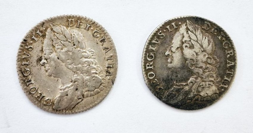 George II (1727-1760) 2 Sixpences, 1758/7 and 1757, Laurette head facing left, reverse angles plain first good fine or better, 2nd fair/fine